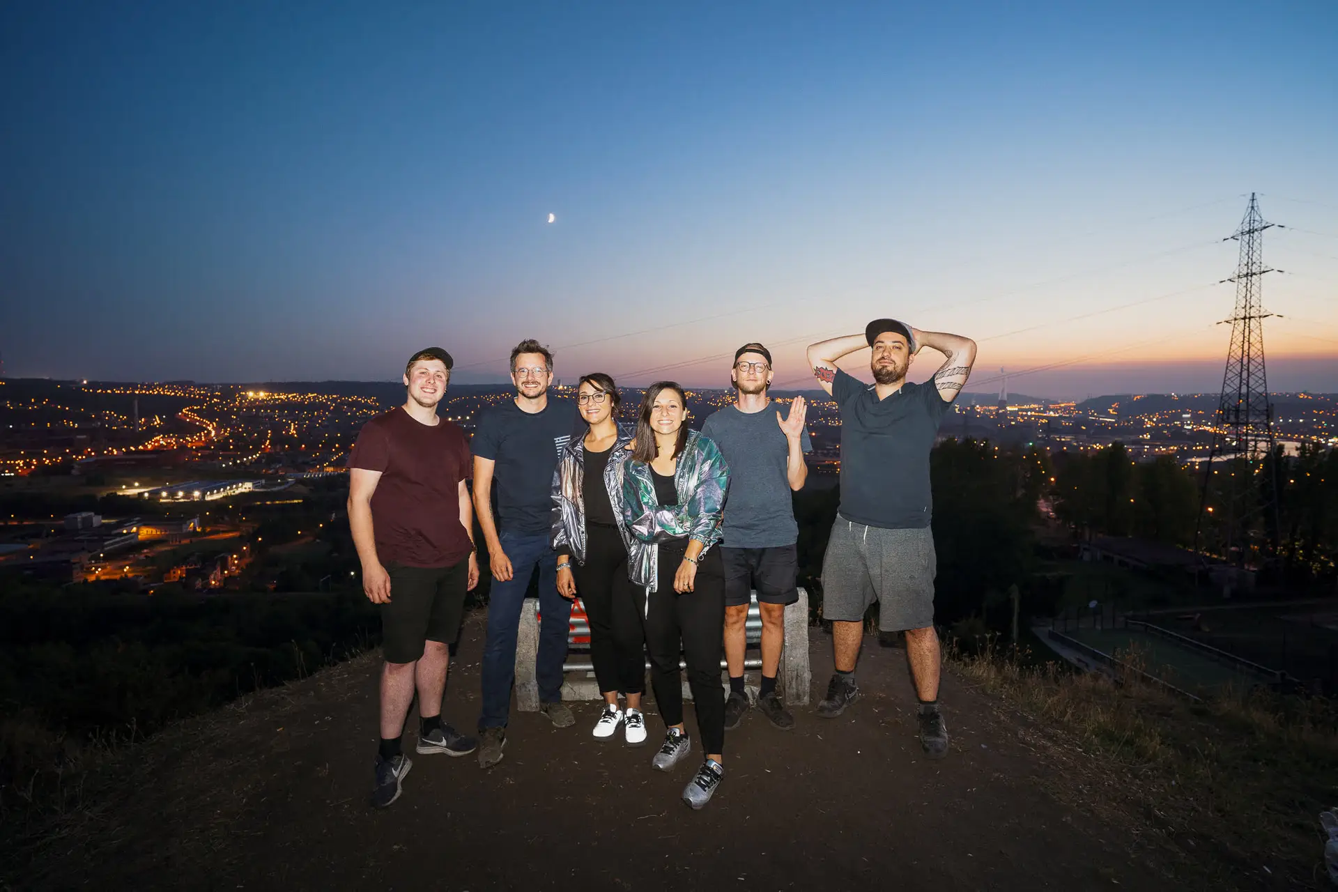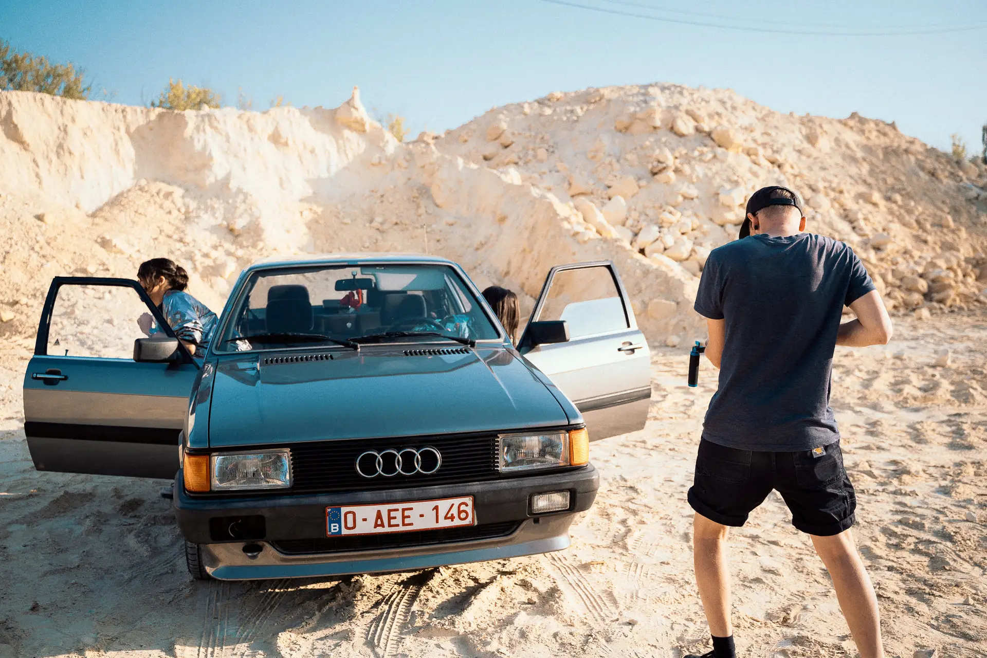 Au programme, nous avons traversé un champ d’éoliennes, une forêt rocheuse, une carrière de sable et un terril avec une super vue. Le tournage s’est terminé la nuit alors que la seule cabine téléphonique de Belgique était juste à coté d’une usine dont les cheminées étaient éclairé telles des géantes bleues. Une chance incroyable qui clôture une journée pleine de rebondissement tels que :